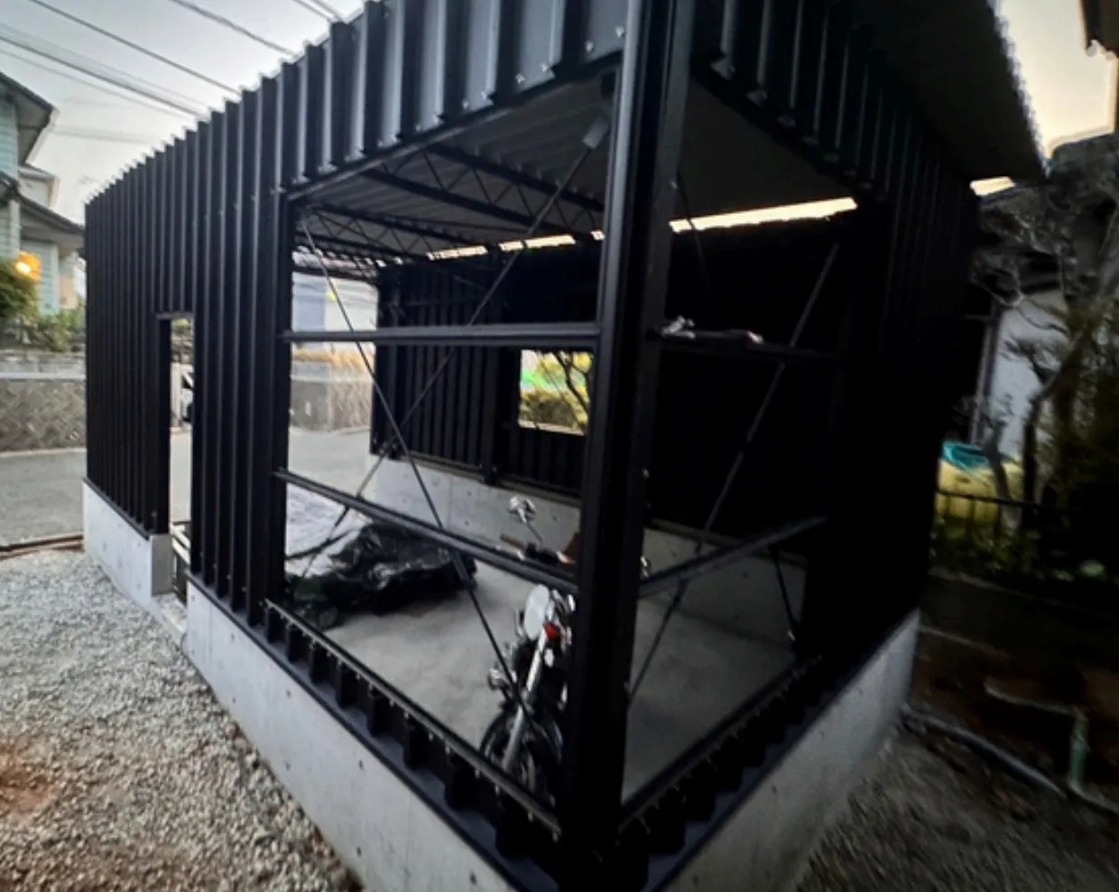 壁の色とフレームやサッシの色を合わせることで、ガレージの重厚感をより強調します。