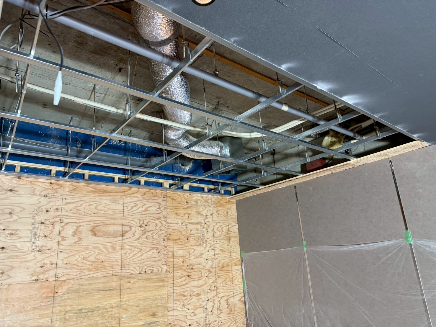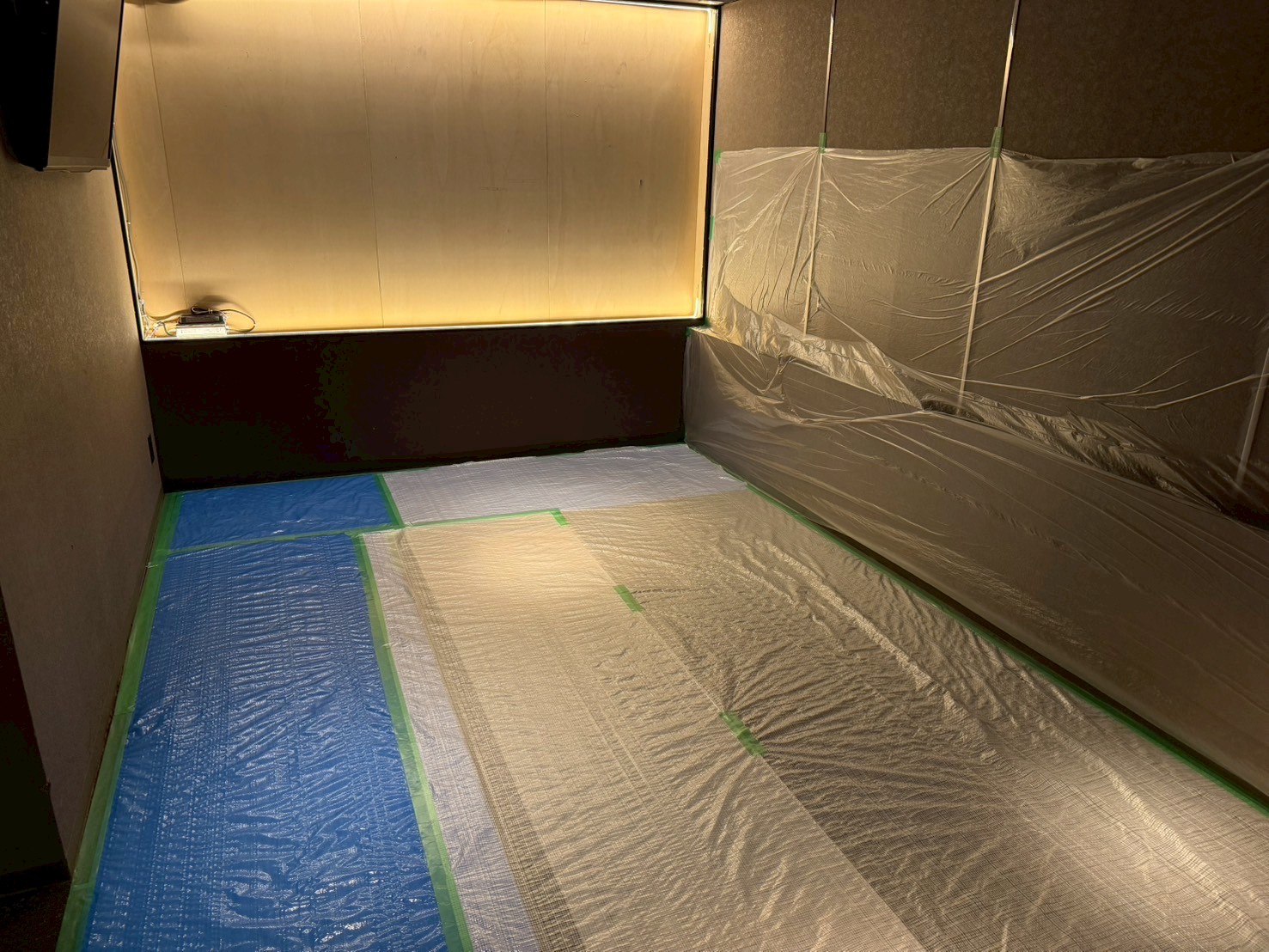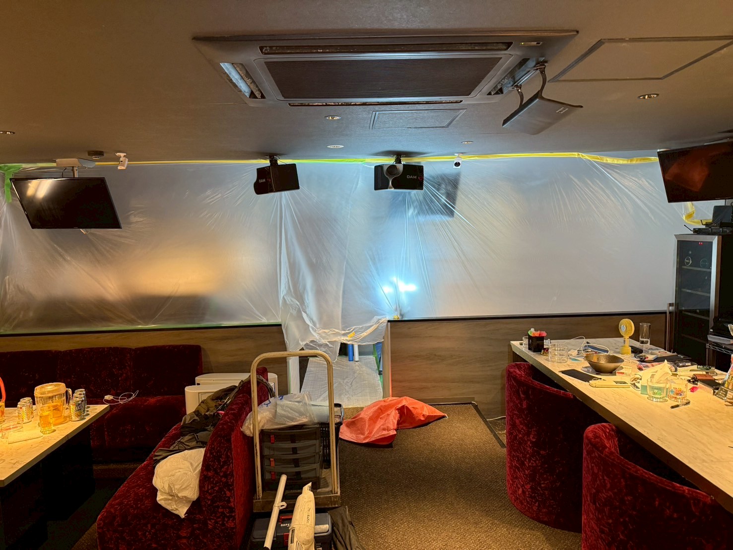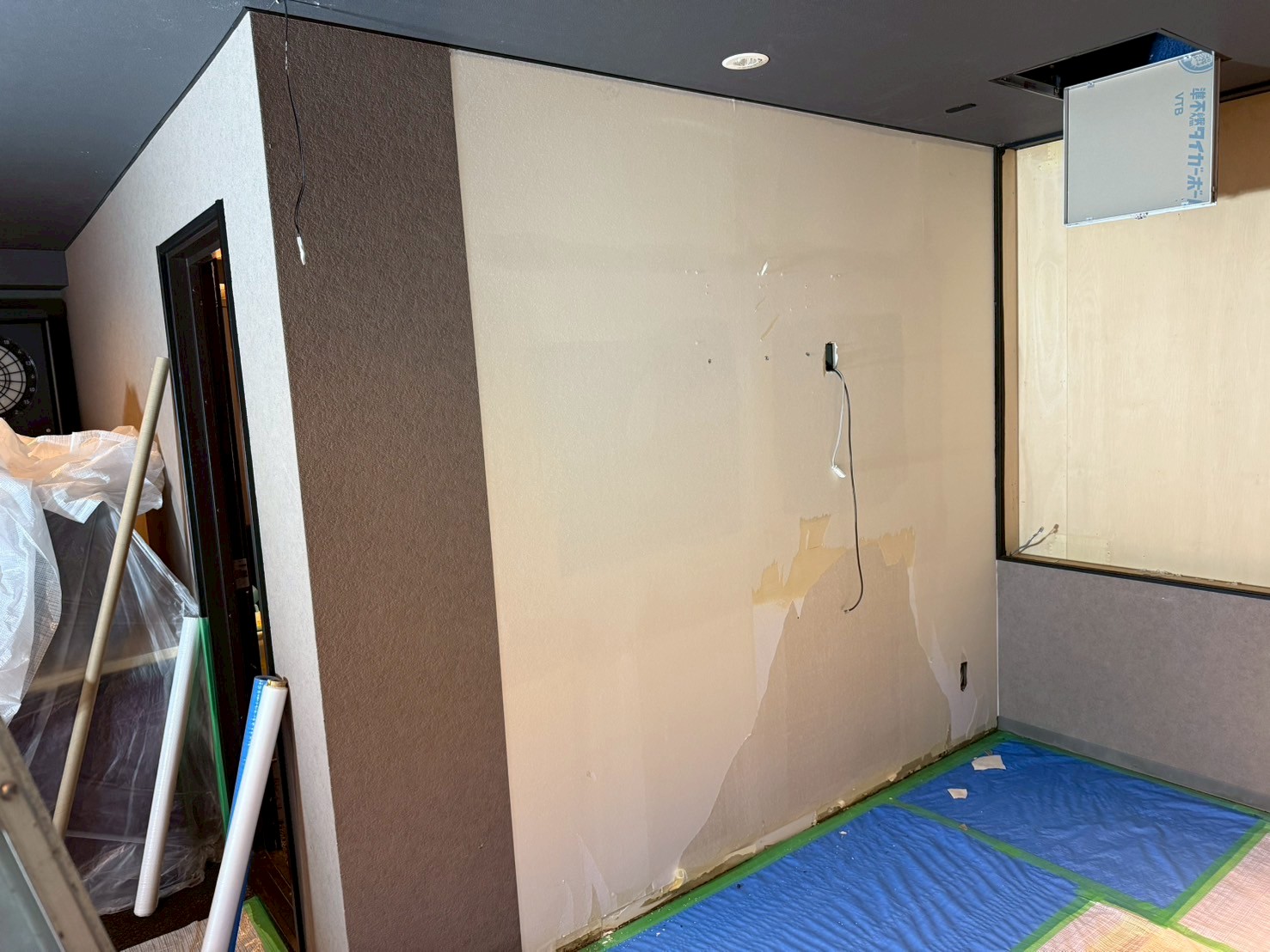 既存の壁と天井を一度撤去し、新たに下地を製作。