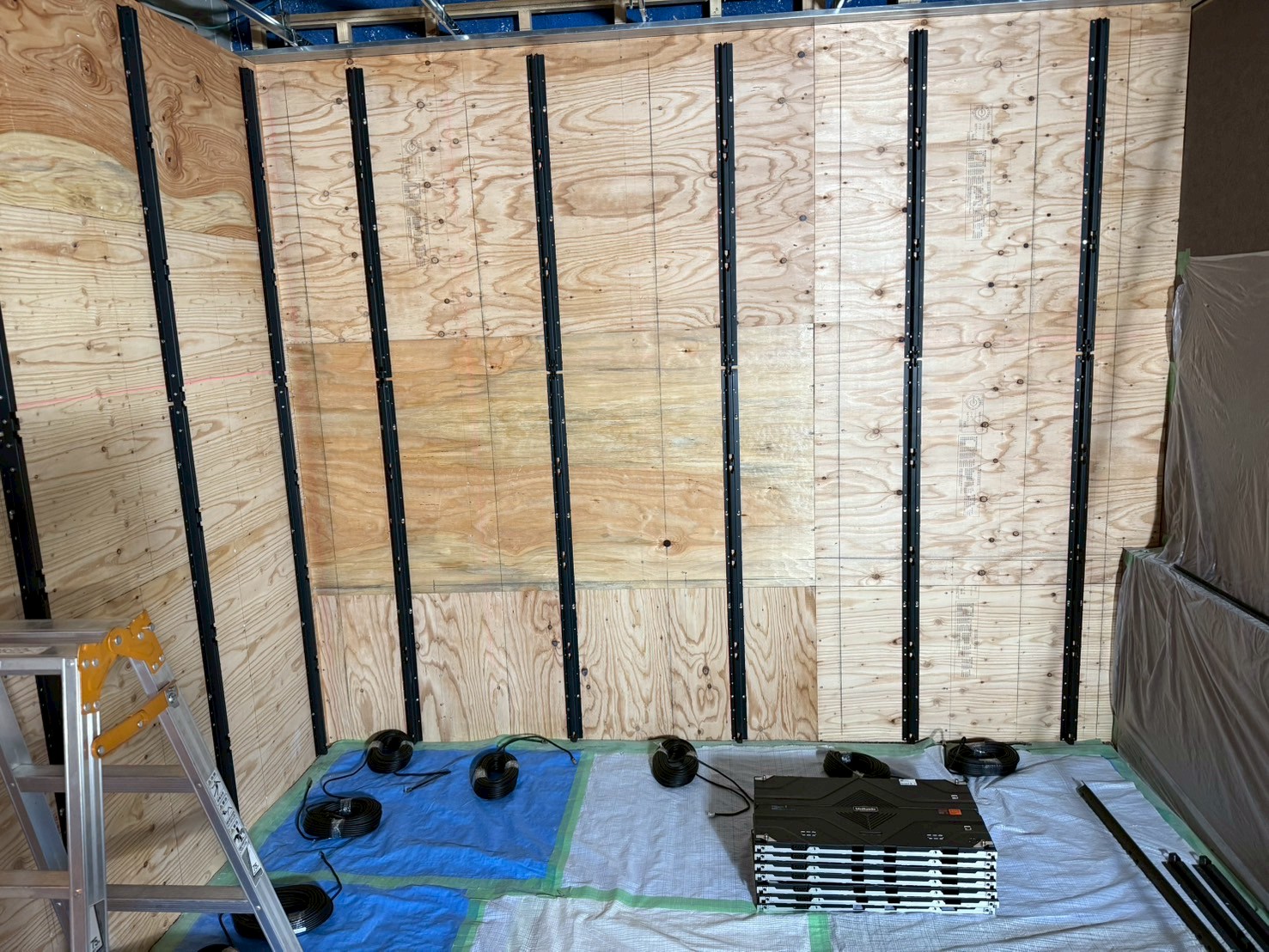 その上に専用レールを取り付け、精密な位置調整を行いながらキャビネットを設置しました。