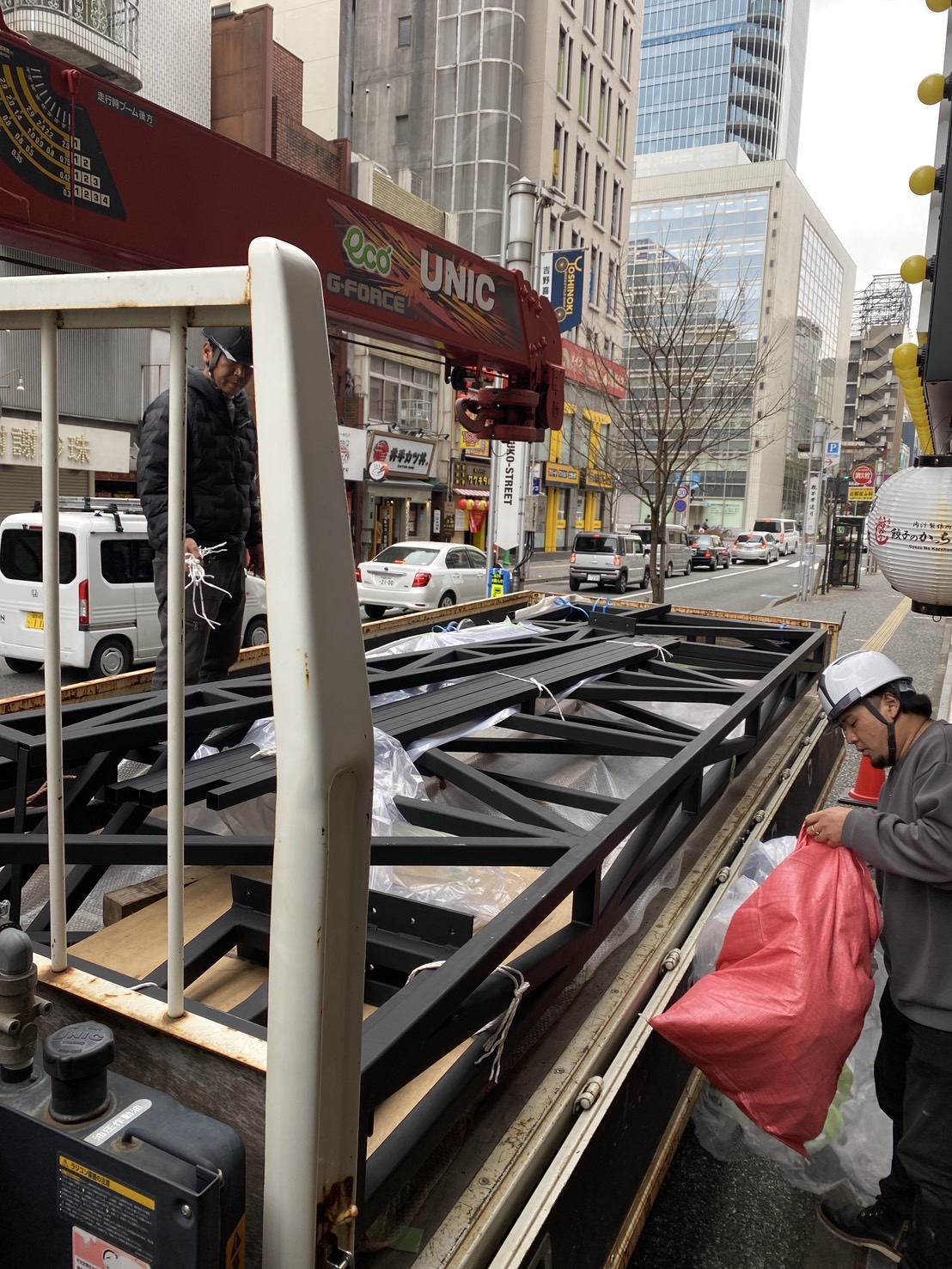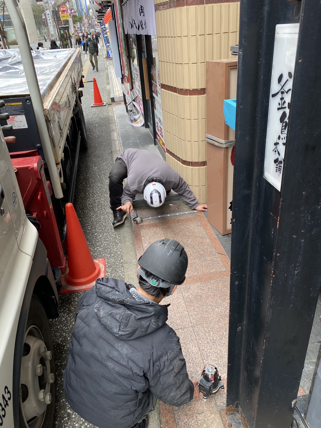 福岡市の繁華街にある飲食テナントビル入口上部に、外部大型LEDビジョンを設置しました。
